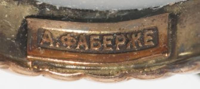 Porte une plaquette "A Fabergé", circa 1880, or et argent, 2x2.5 cm, 6 g, dans un écrin K. Fabergé