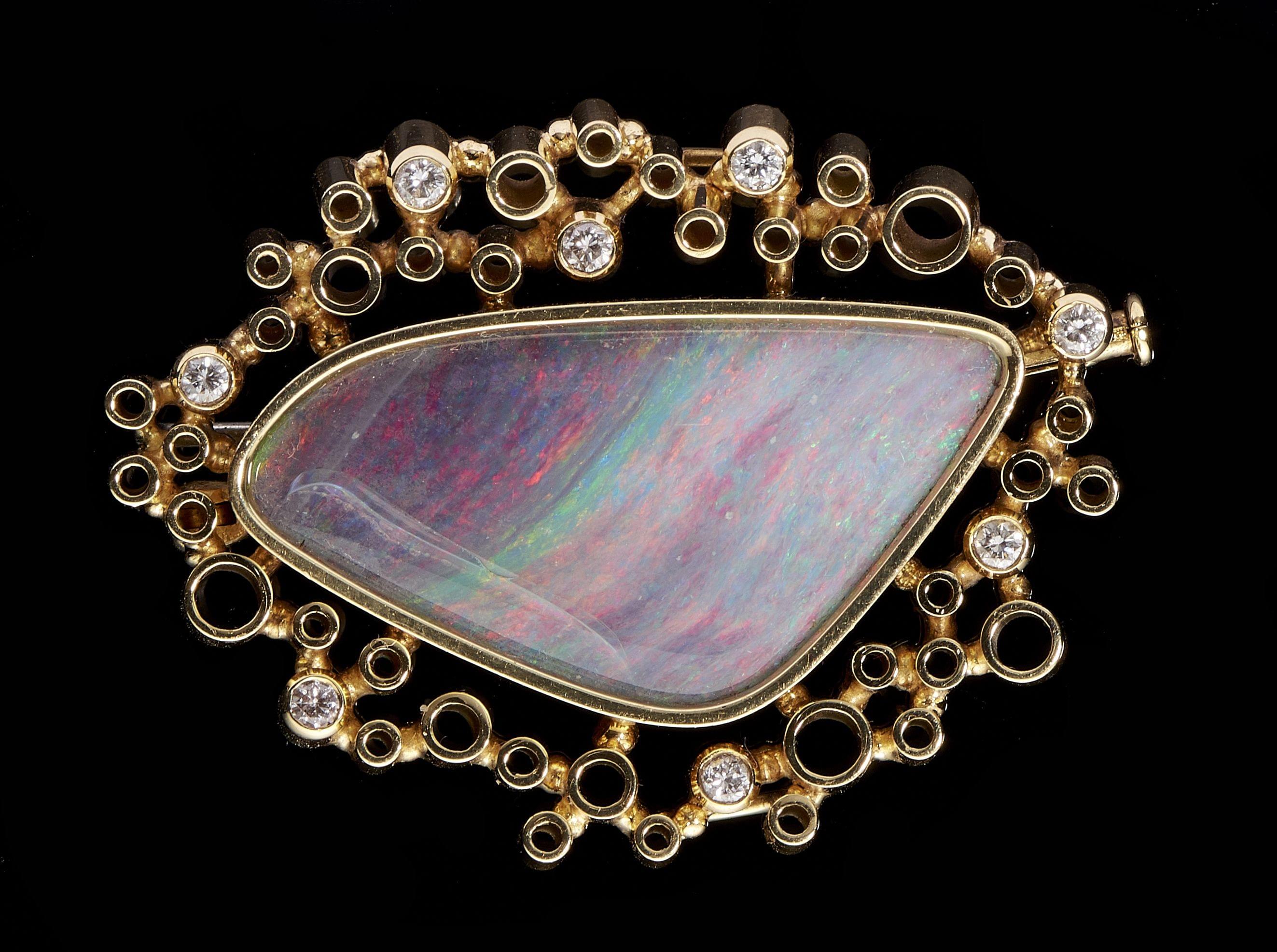67. Broche-pendentif ajourée centrée d'une opale triplette rehaussée de petits diamants