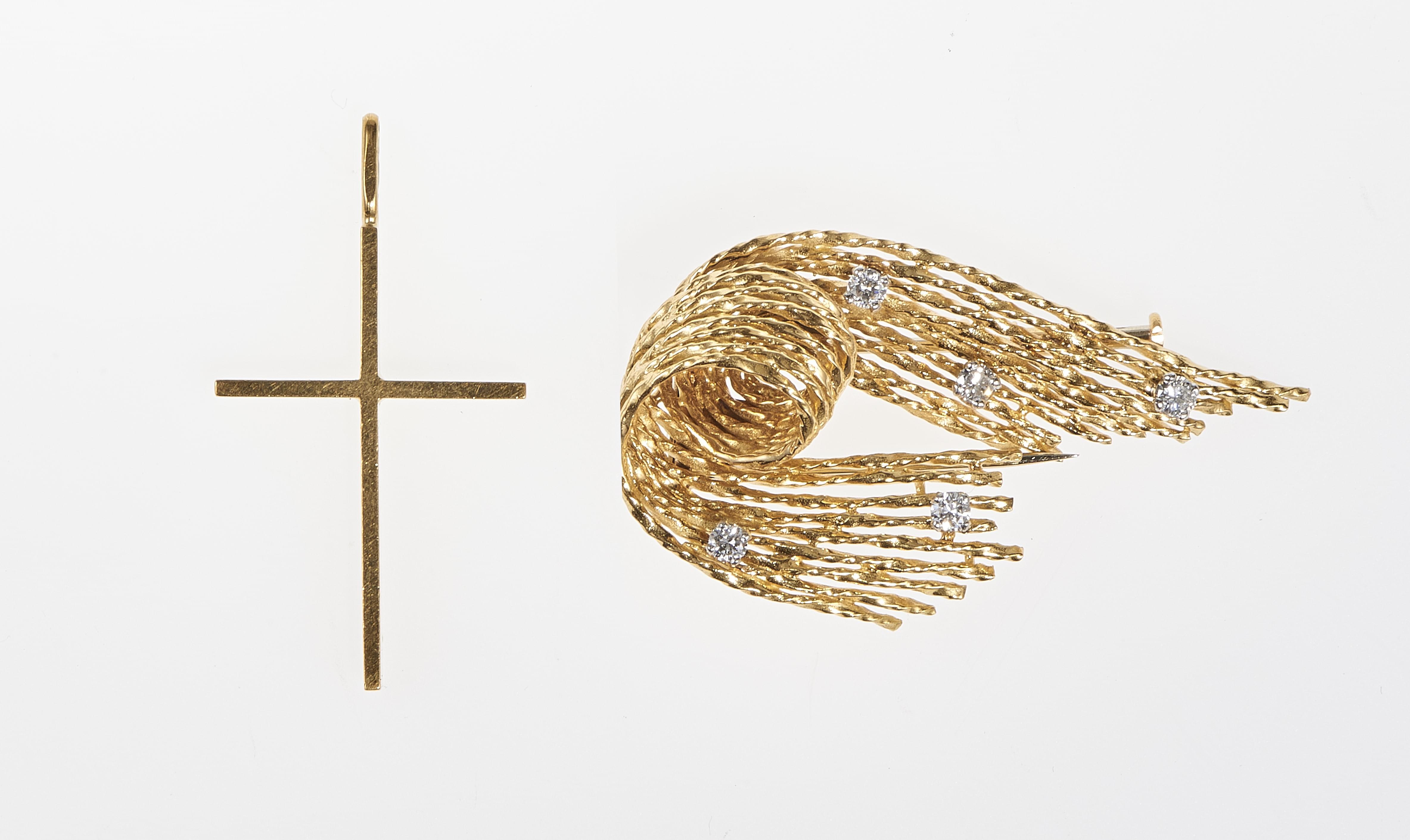 Or 750, H 4,5 cm, 9 g. On joint une croix en or 750, H 3,5 cm.