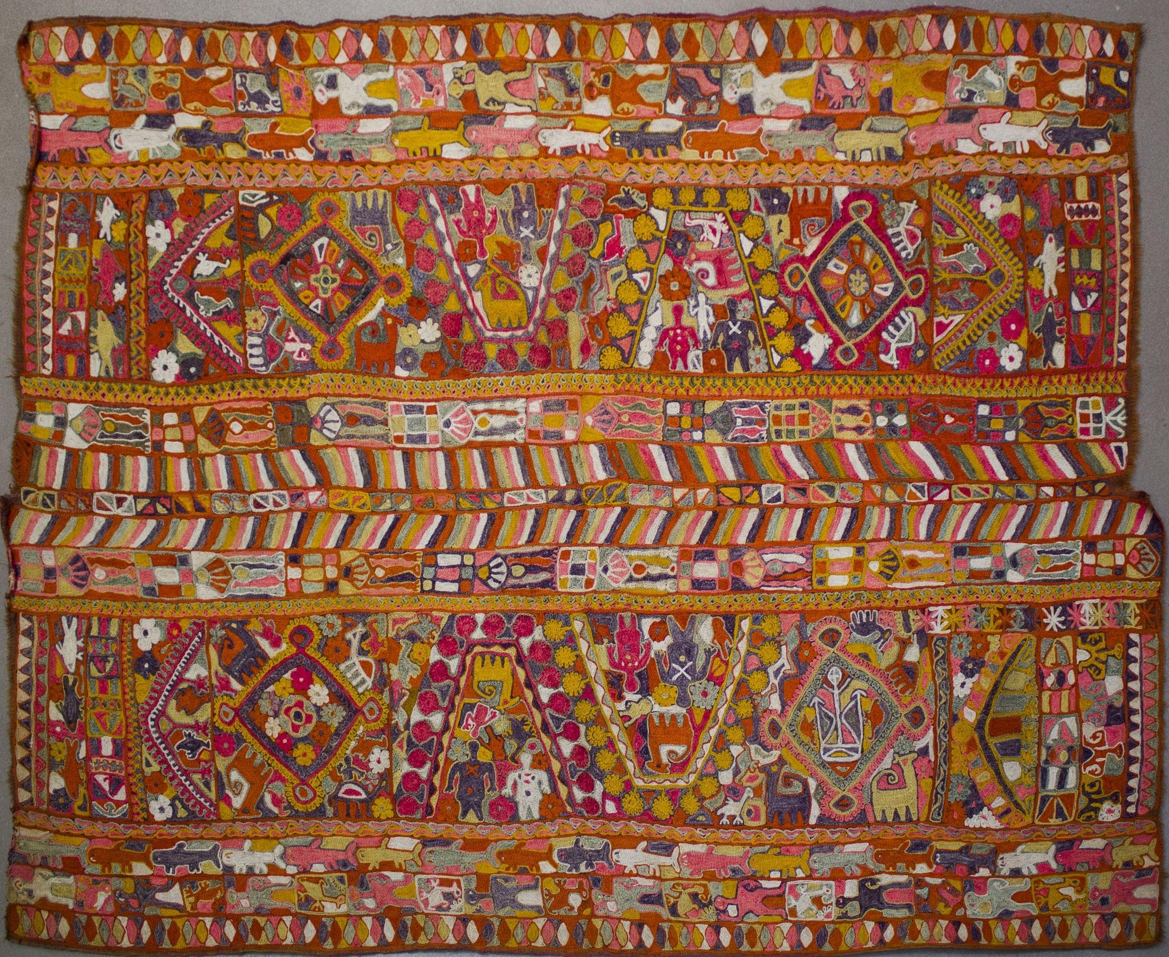 4003. Broderie à décor de personnages et motifs géométriques en registre