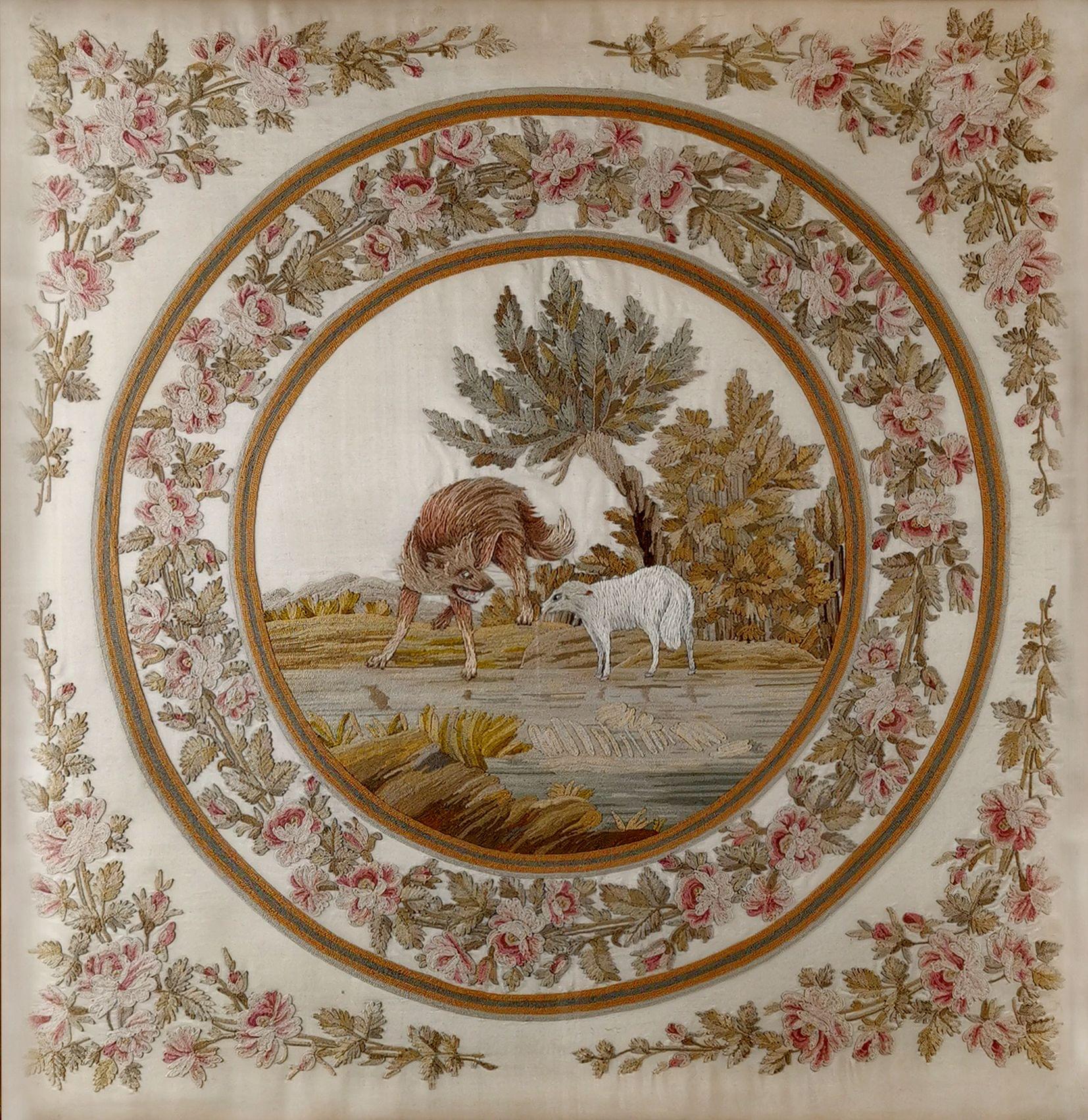 5395. Broderie à motif du loup et l'agneau, XIXe s
