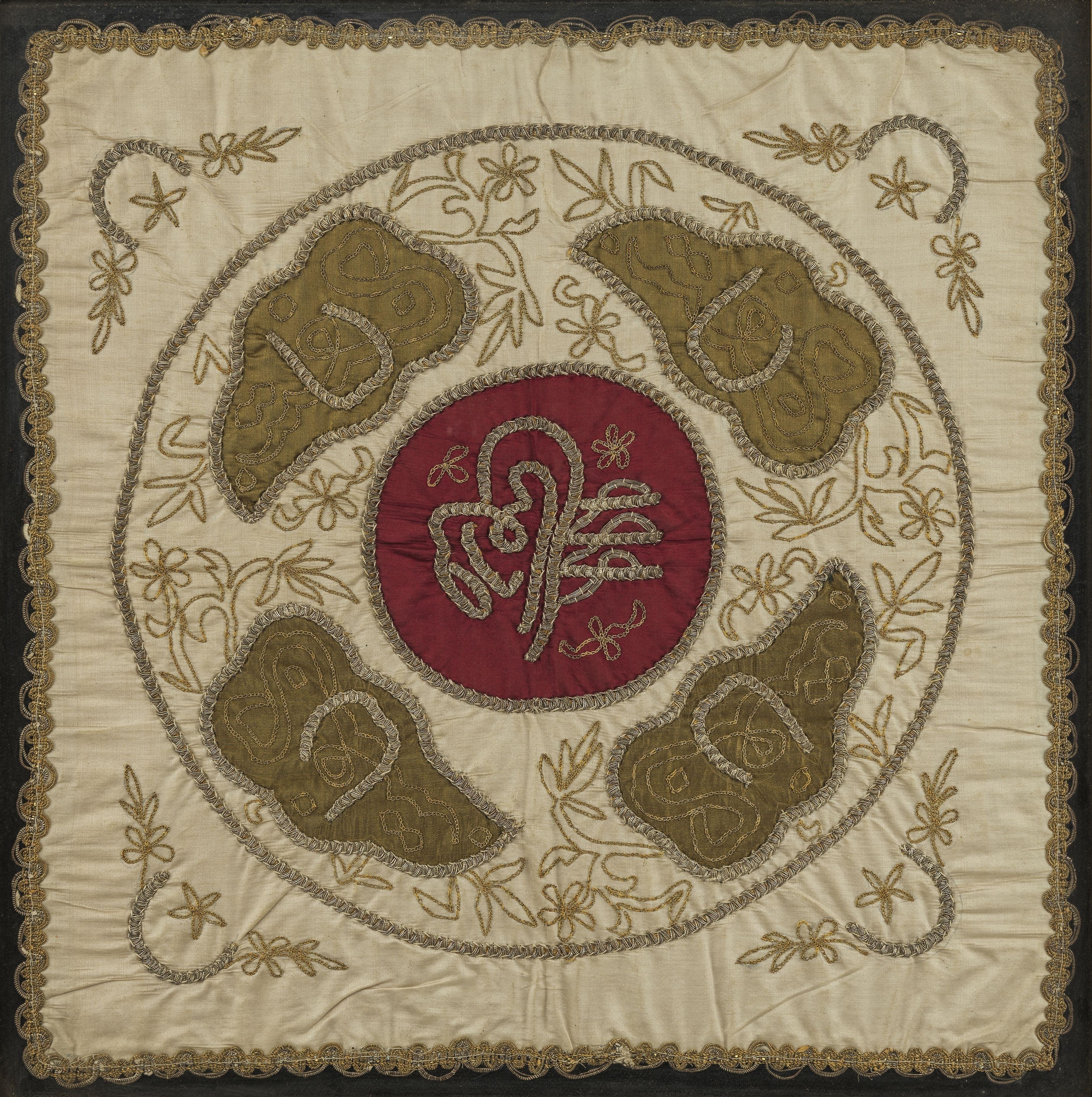 Un abattant et deux tiroirs, noyer et loupe de noyer, bronze dor...