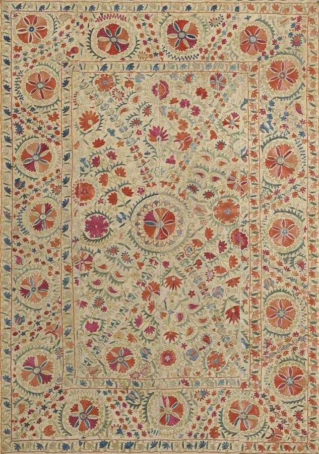 726. Broderie Suzani à motifs floraux, Asie centrale, XIXe s
