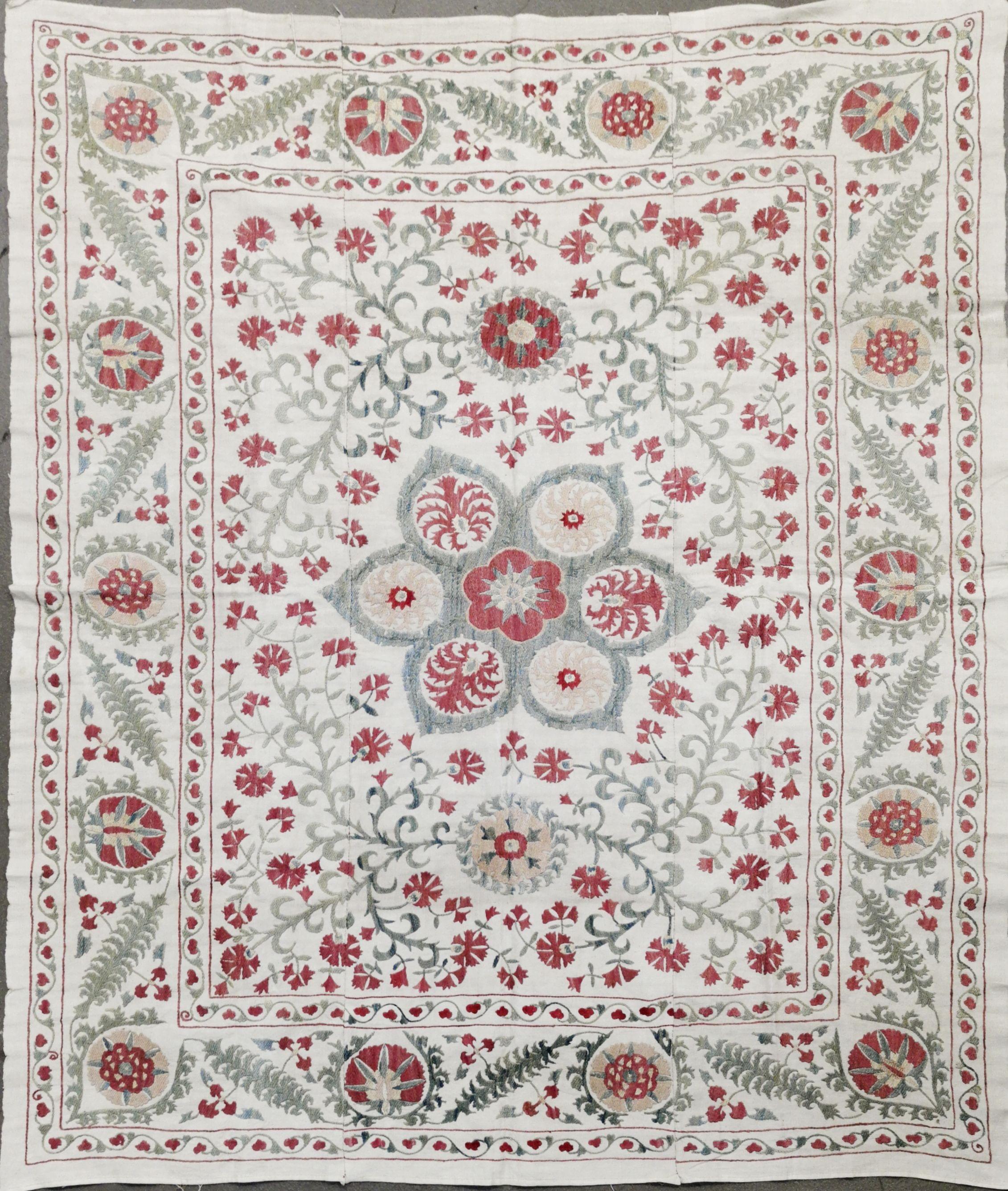 750. Broderie Suzani en soie sur trame en lin, Ouzbékistan