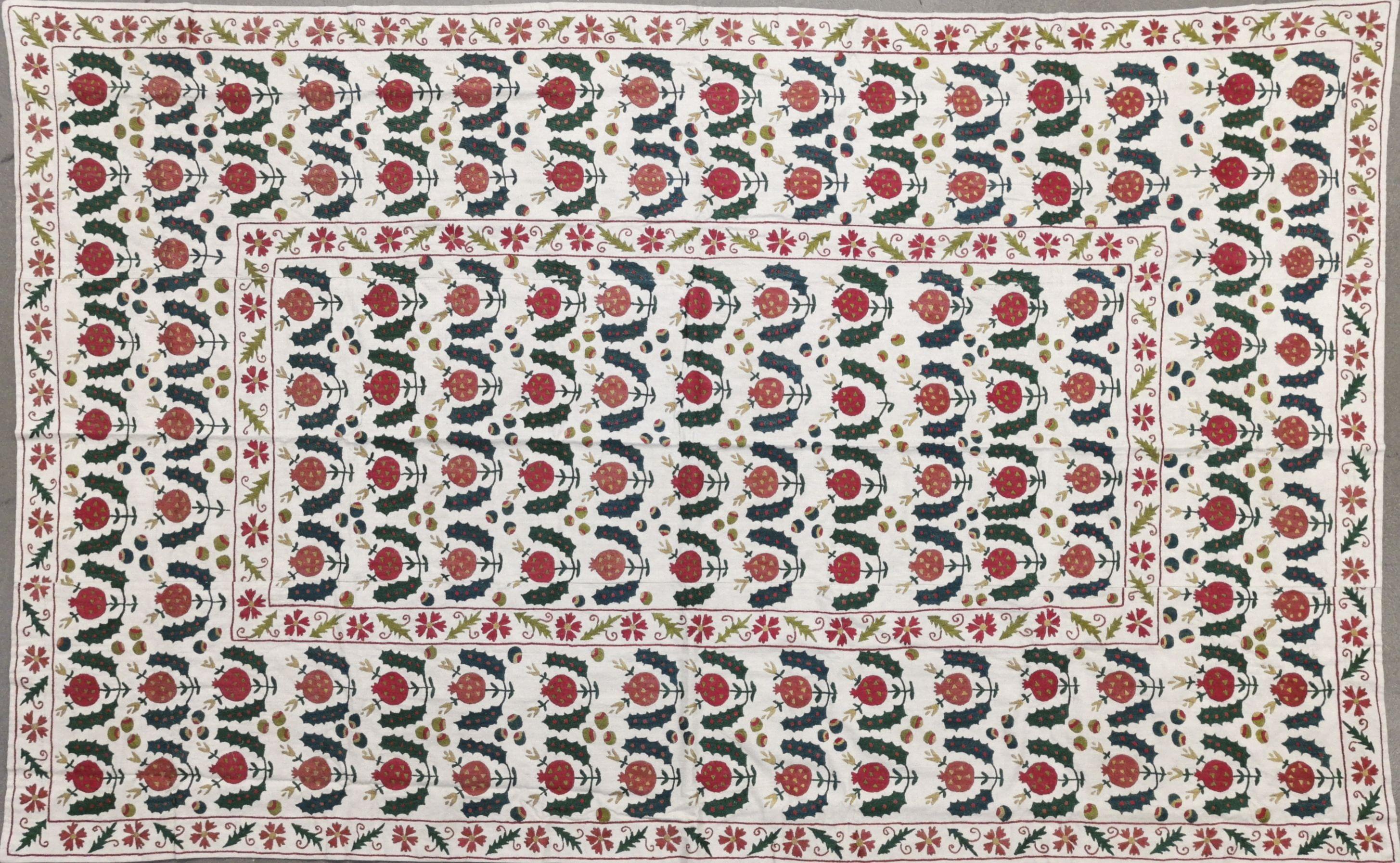 751. Broderie Suzani en soie sur trame en lin, Ouzbékistan