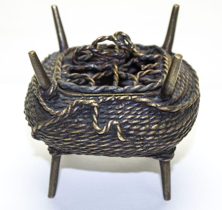 Bronze tressé avec couvercle, signé à la base, Japon, époque Meiji (1868-1912), H 9 cm, D 9 cm