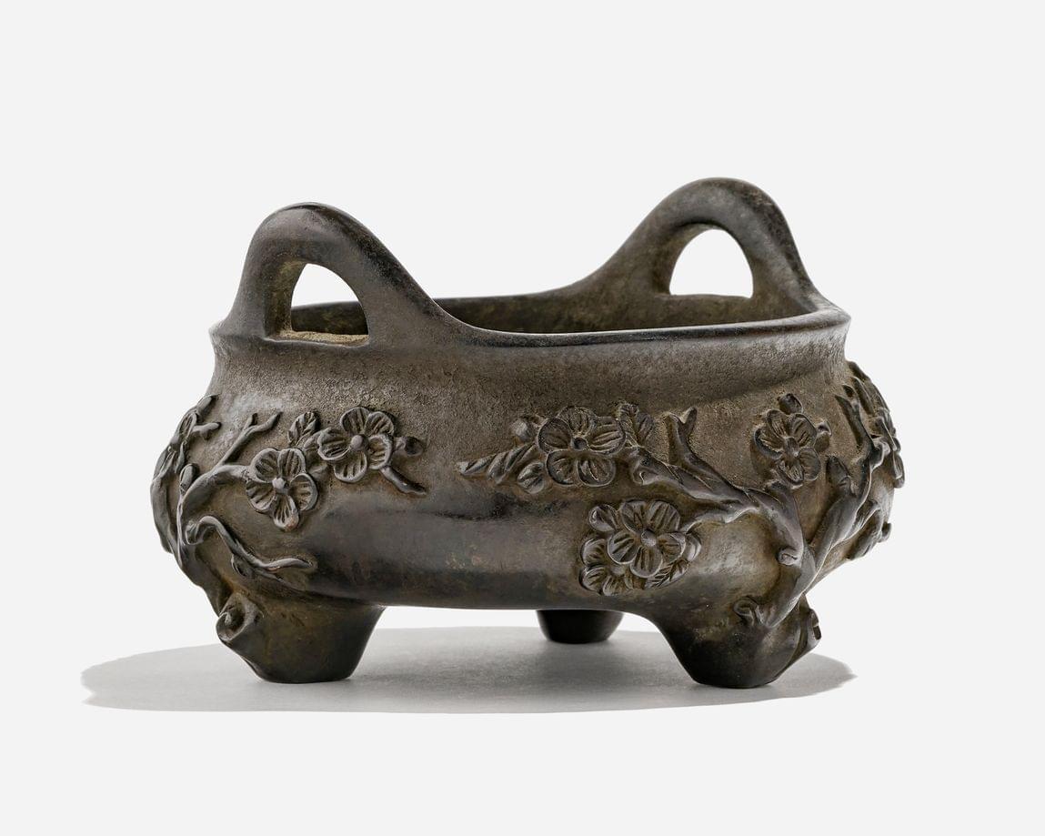868. Brûle-encens à décor de branches de prunier fleuries en relief