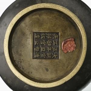 Bronze à patine brune avec inscription apocryphe sous la base Daming