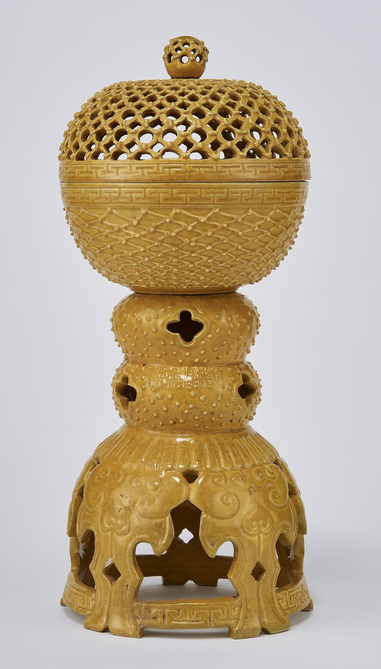 Porcelaine émaillée monochrome jaune, H 30 cm