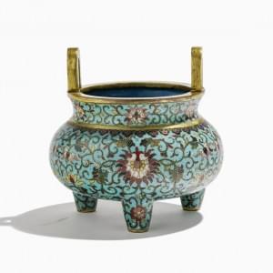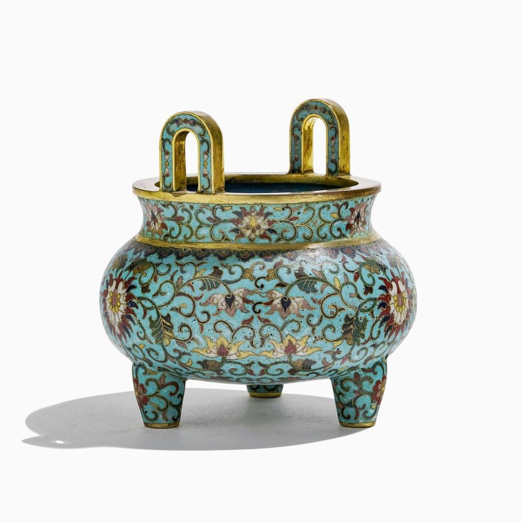 Bronze doré et émaux cloisonnés à décor floral, H 12 cm