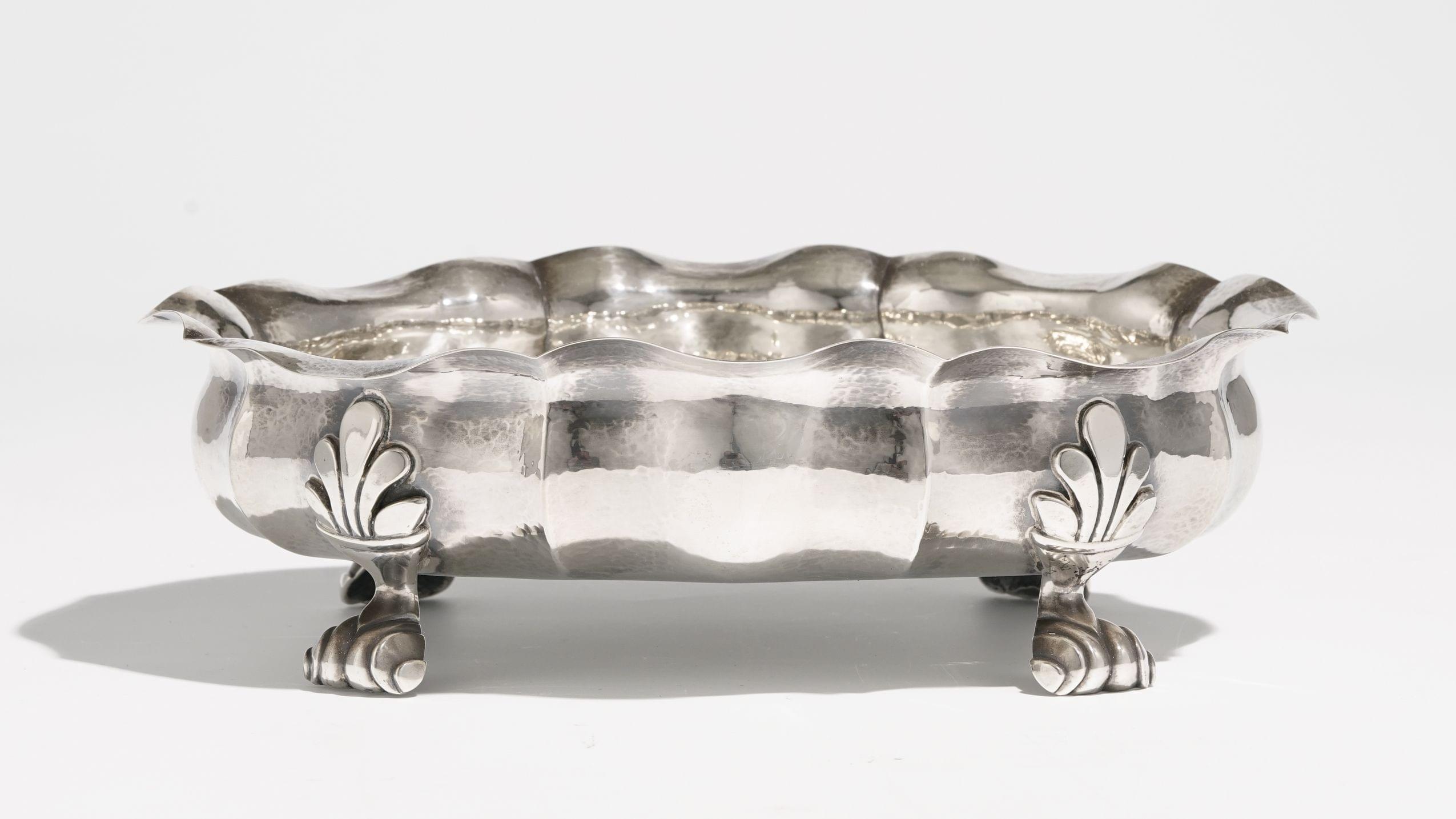 559. Buccellati, coupe centre de table ovale festonnée quadripode,