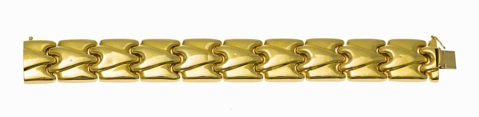 177. Bracelet trois ors formé d'une alternance de mailles de chaque o...