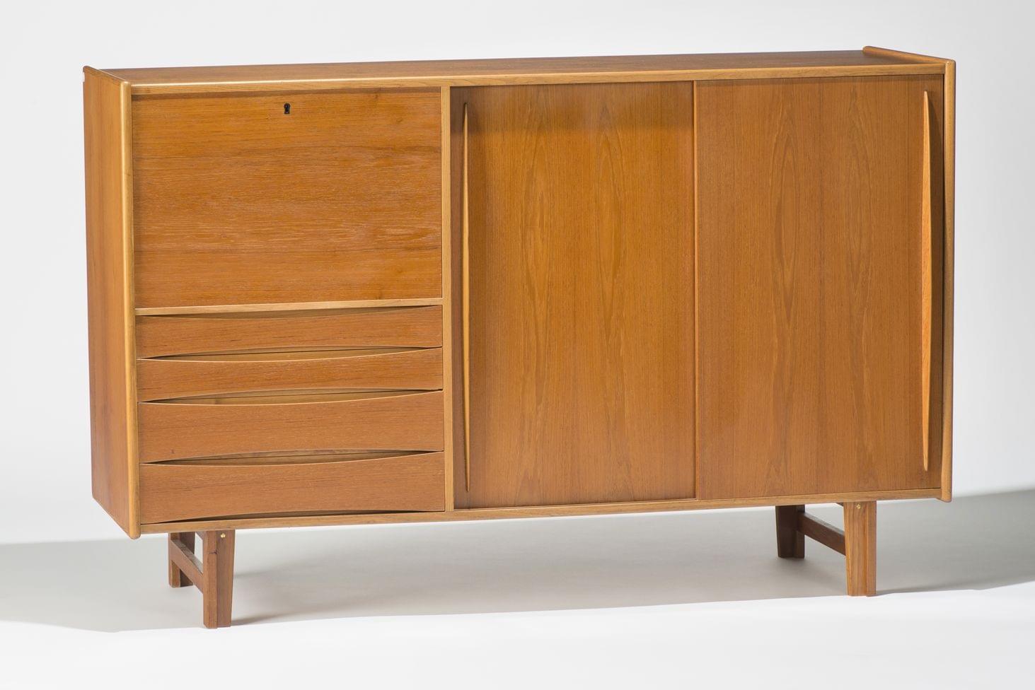 Teck, un abattant et tiroirs, probablement scandinavie, circa 1970, 107x165x45 cm