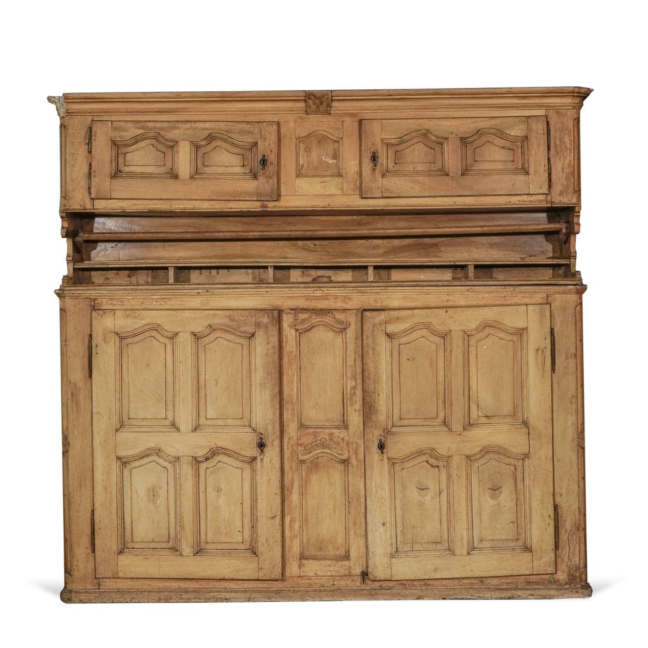 Deux vantaux en partie haute, vaisselier et deux vantaux moulurés en partie basse, bois fruitier, monogrammé EBK,