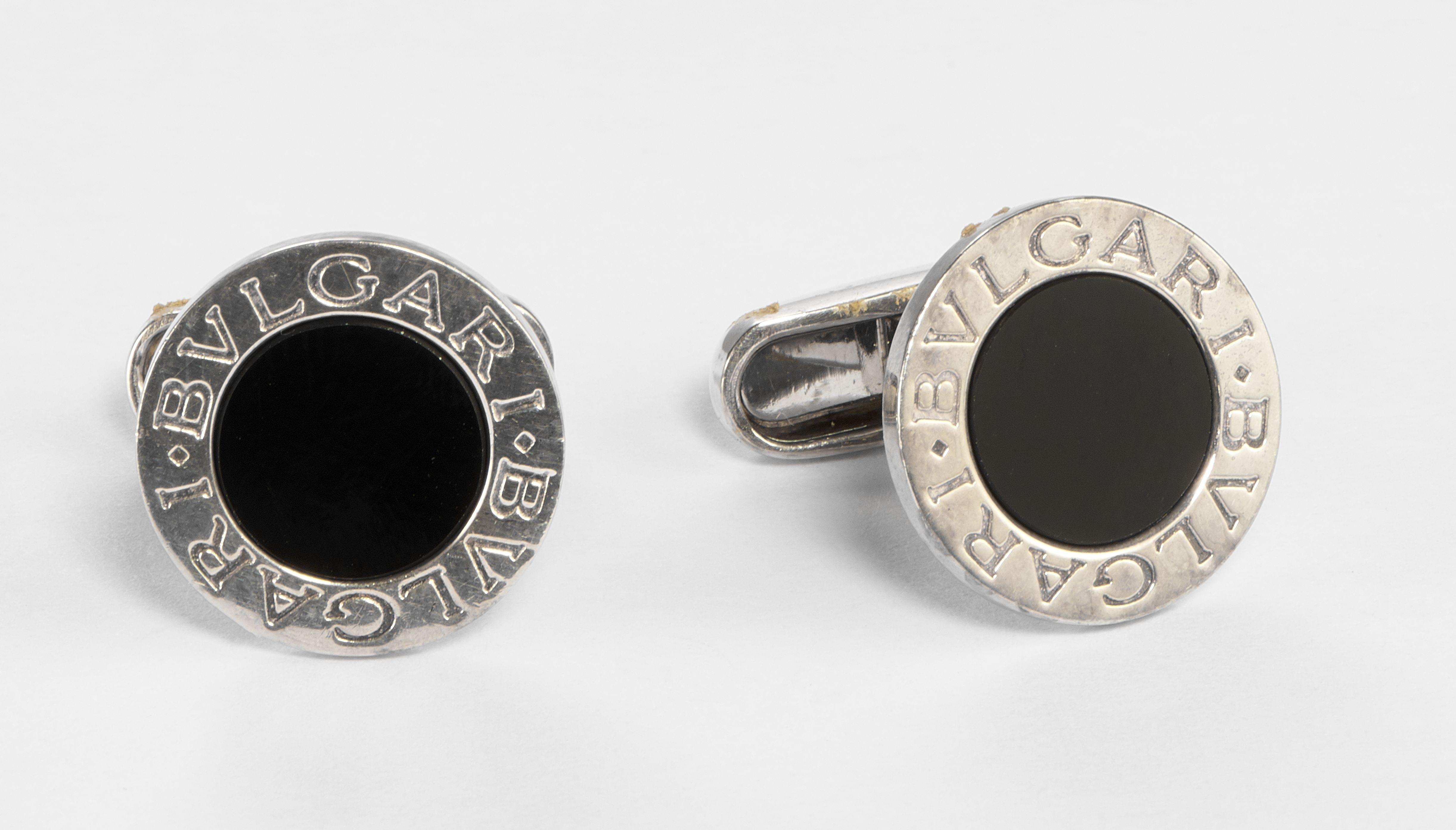 37. Boutons de manchette en cristal de roche sertis de rubis taille...
