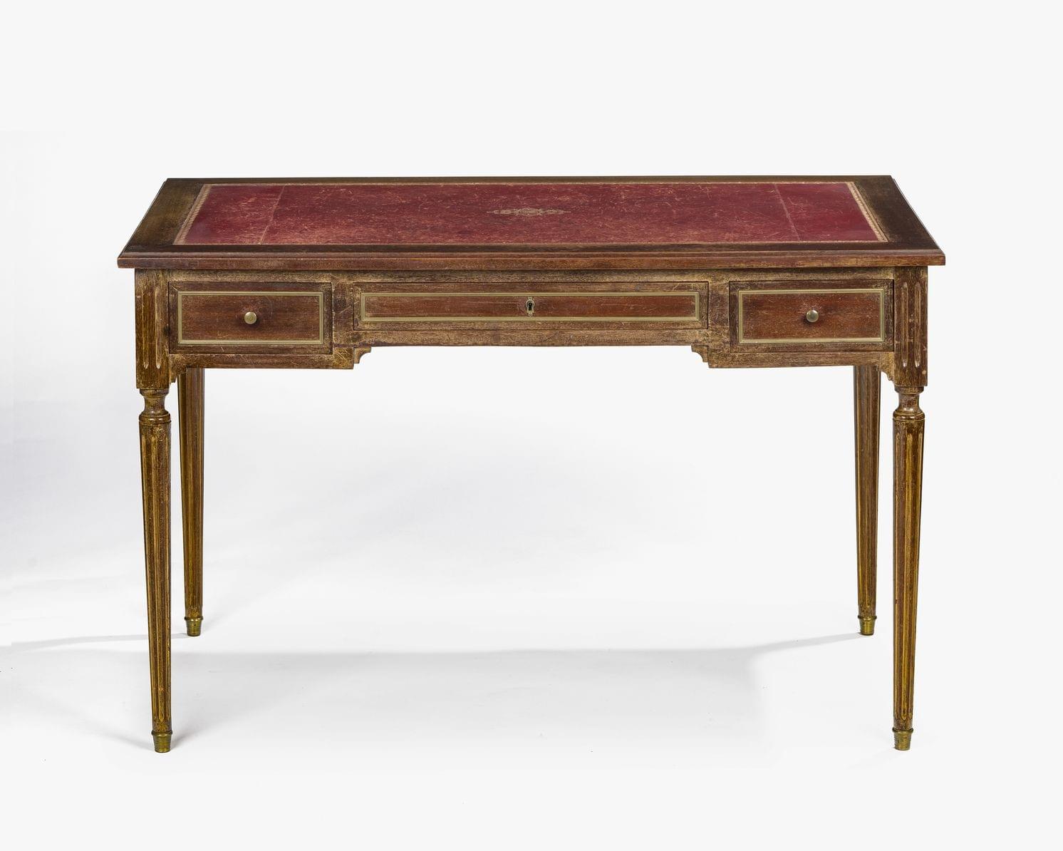 Trois tiroirs, bois naturel, filets de laiton, 75x121x70 cm