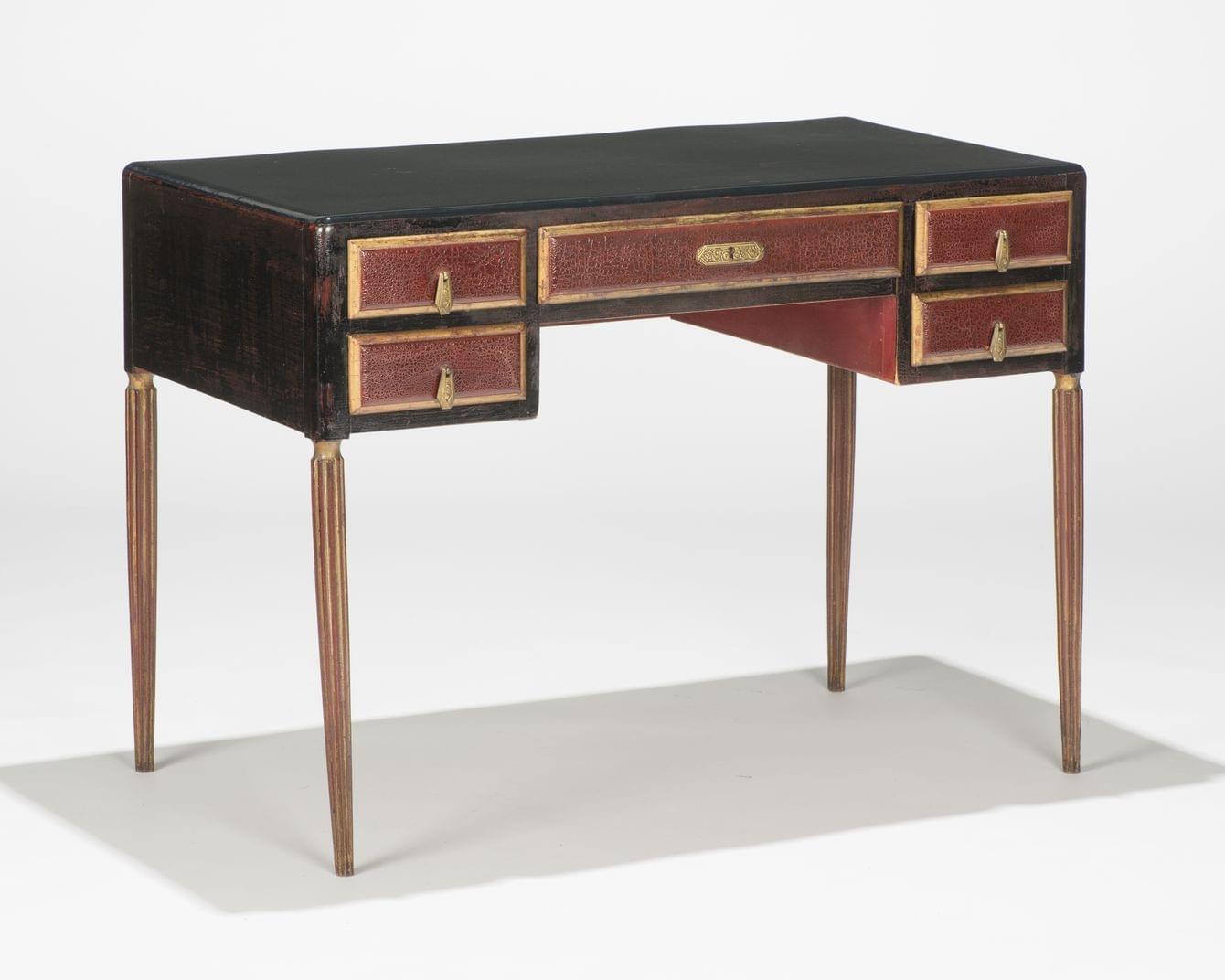 Bois laqué et craquelé noir rouge et or, laiton doré, circa 1920, 74x100x55 cm