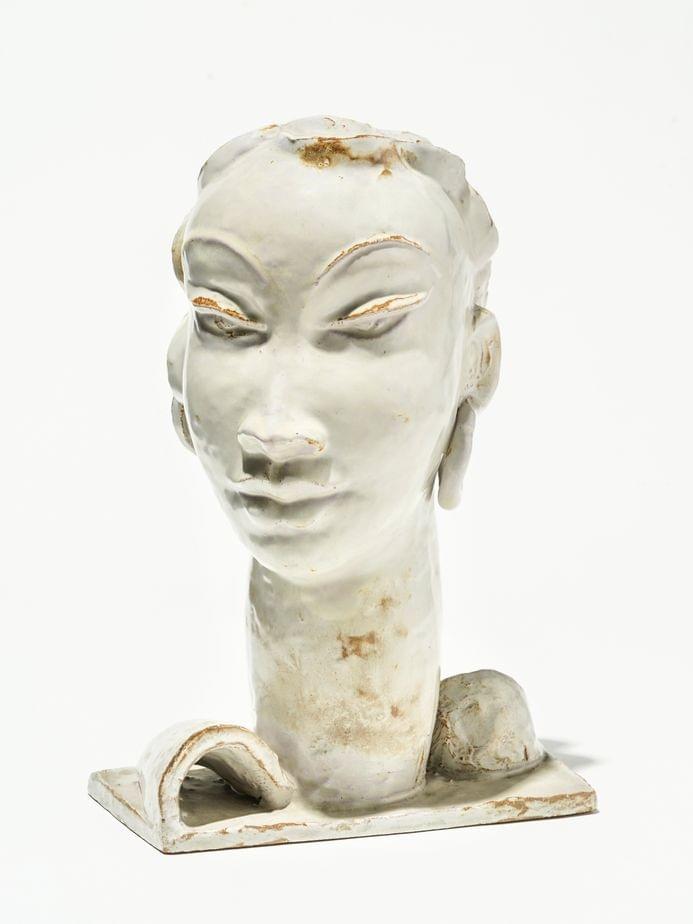 Céramique à décor polychrome de feuilles d'érables, H 12 cm