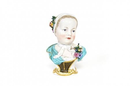 3979. Encrier sommé d'un buste de jeune femme, circa 1900