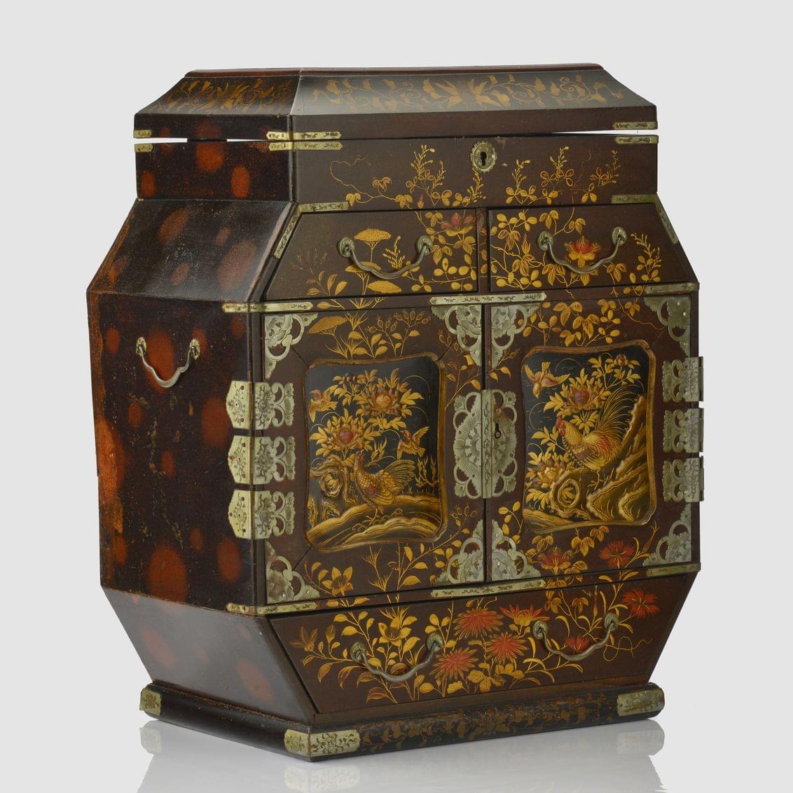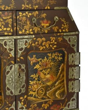 Ouvrant par 2 vantaux, bois laqué beige, placage de simili écail...