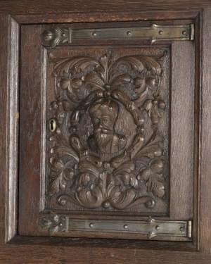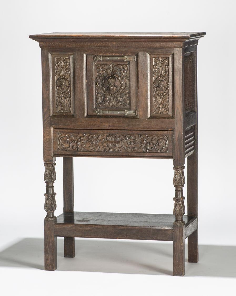 Un abattant en façade démasquant tiroirs et casiers flanqué de q...