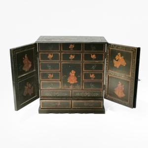Bois laqué polychrome à décor de personnages, 88x82x40 cm