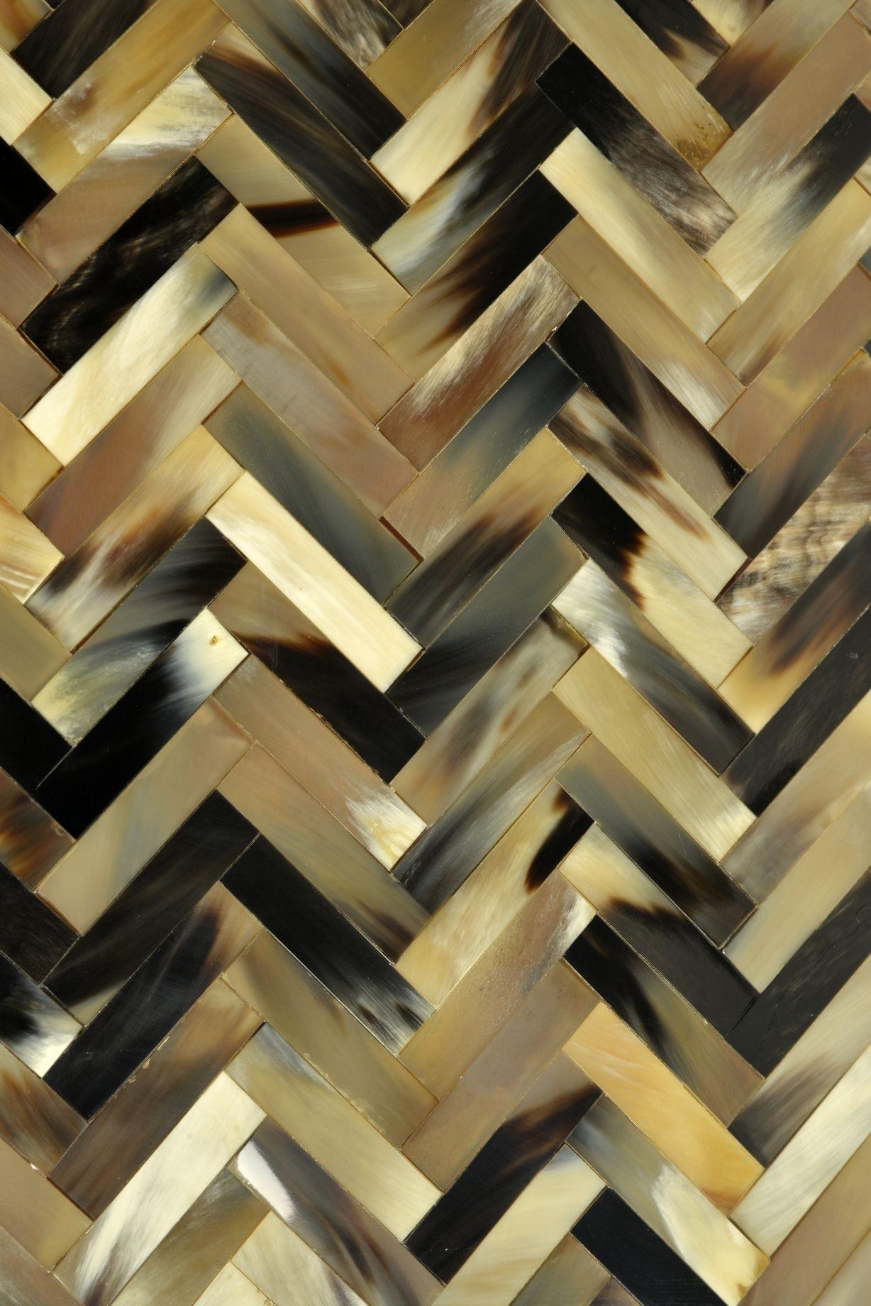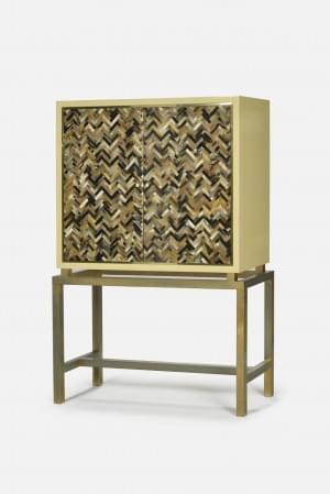 Ouvrant par 2 vantaux, bois laqué beige, placage de simili écaille en chevron, métal chromé, circa 1970, 153x100x40 cm