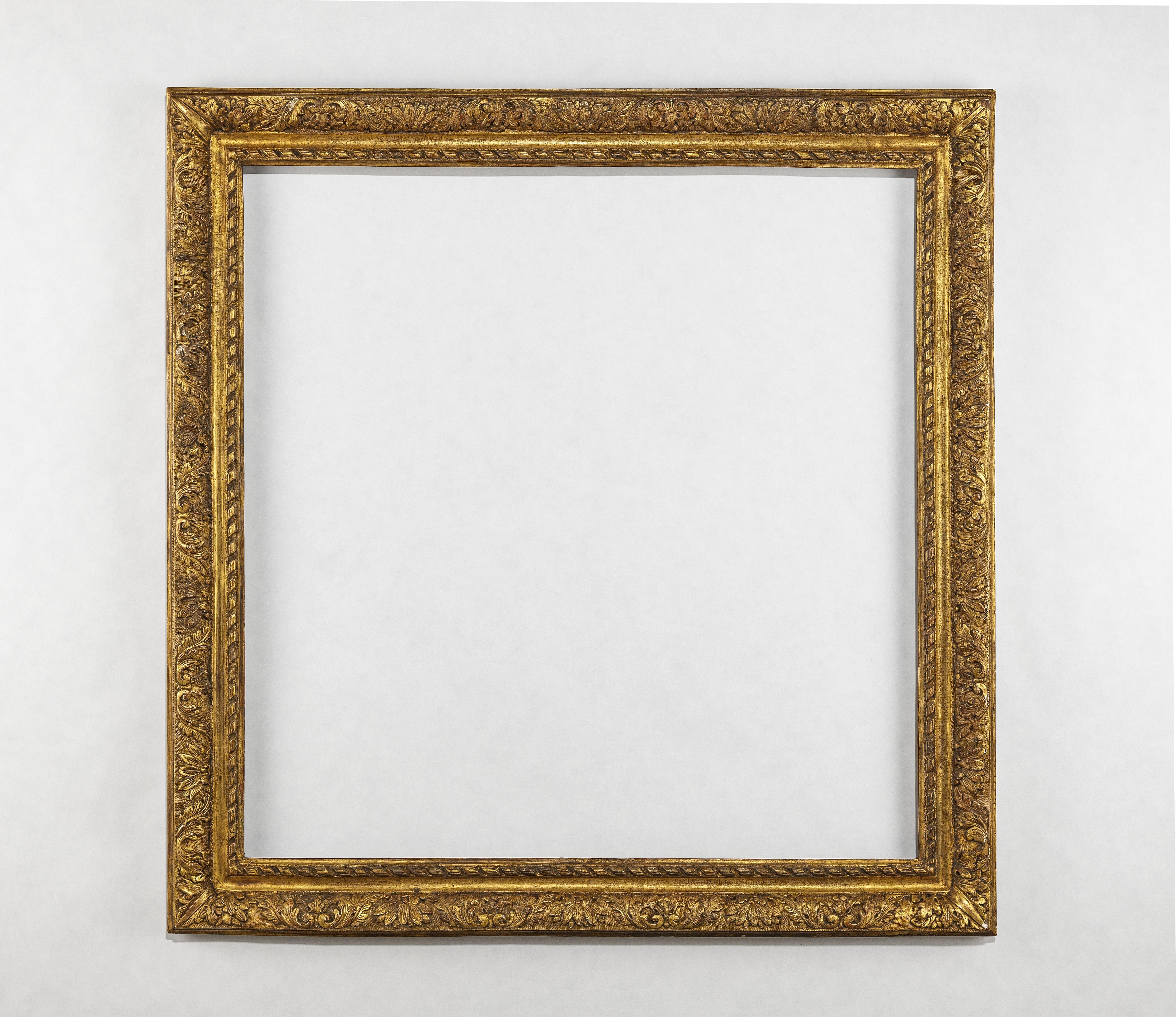 Bois sculpté doré, à motif de feuilles d'acanthe, 111,5x108 et à la vue 93,5x90,5 cm
