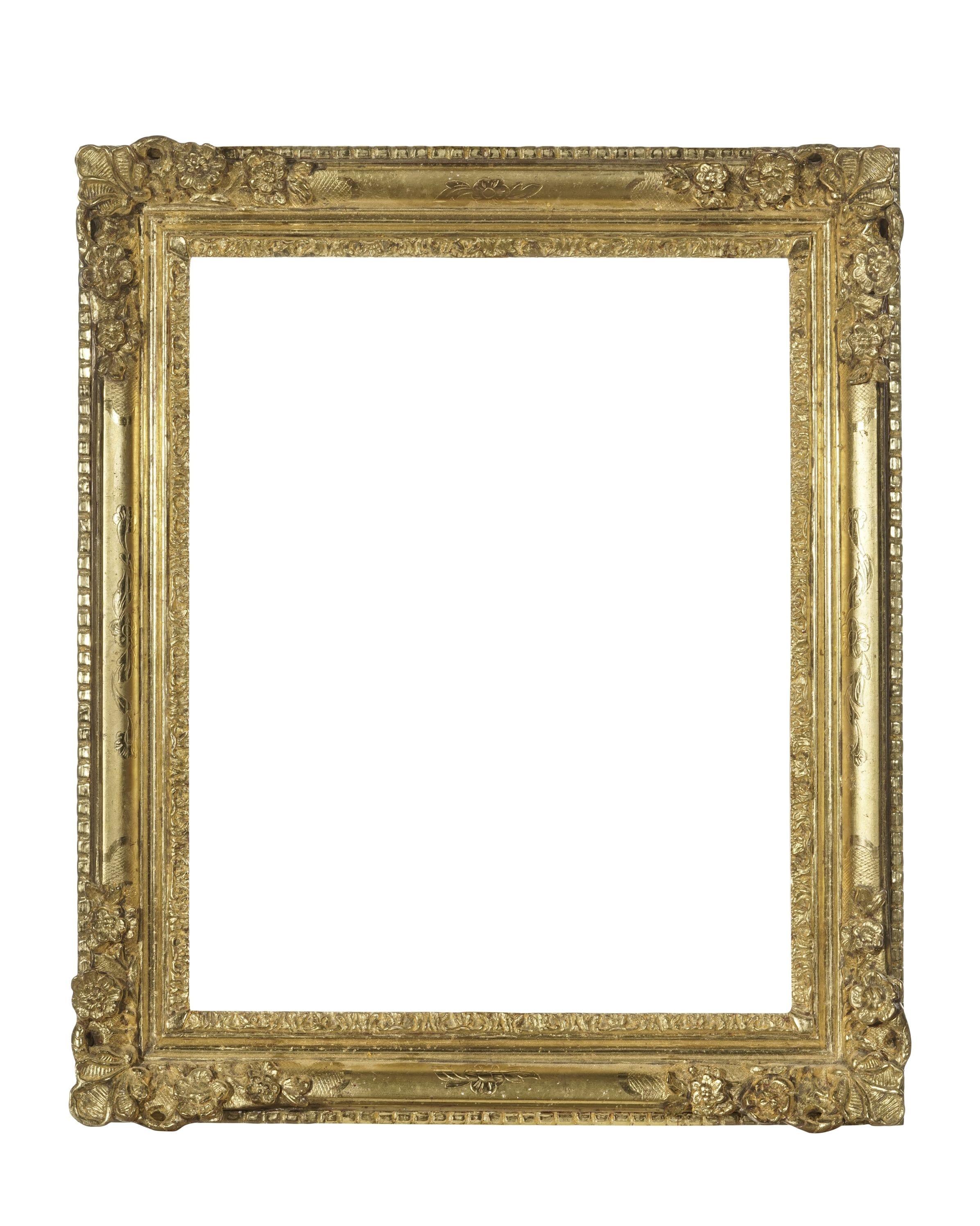 Stuc doré à décor d'une frise d'oves et placage de bois, 27x36,5