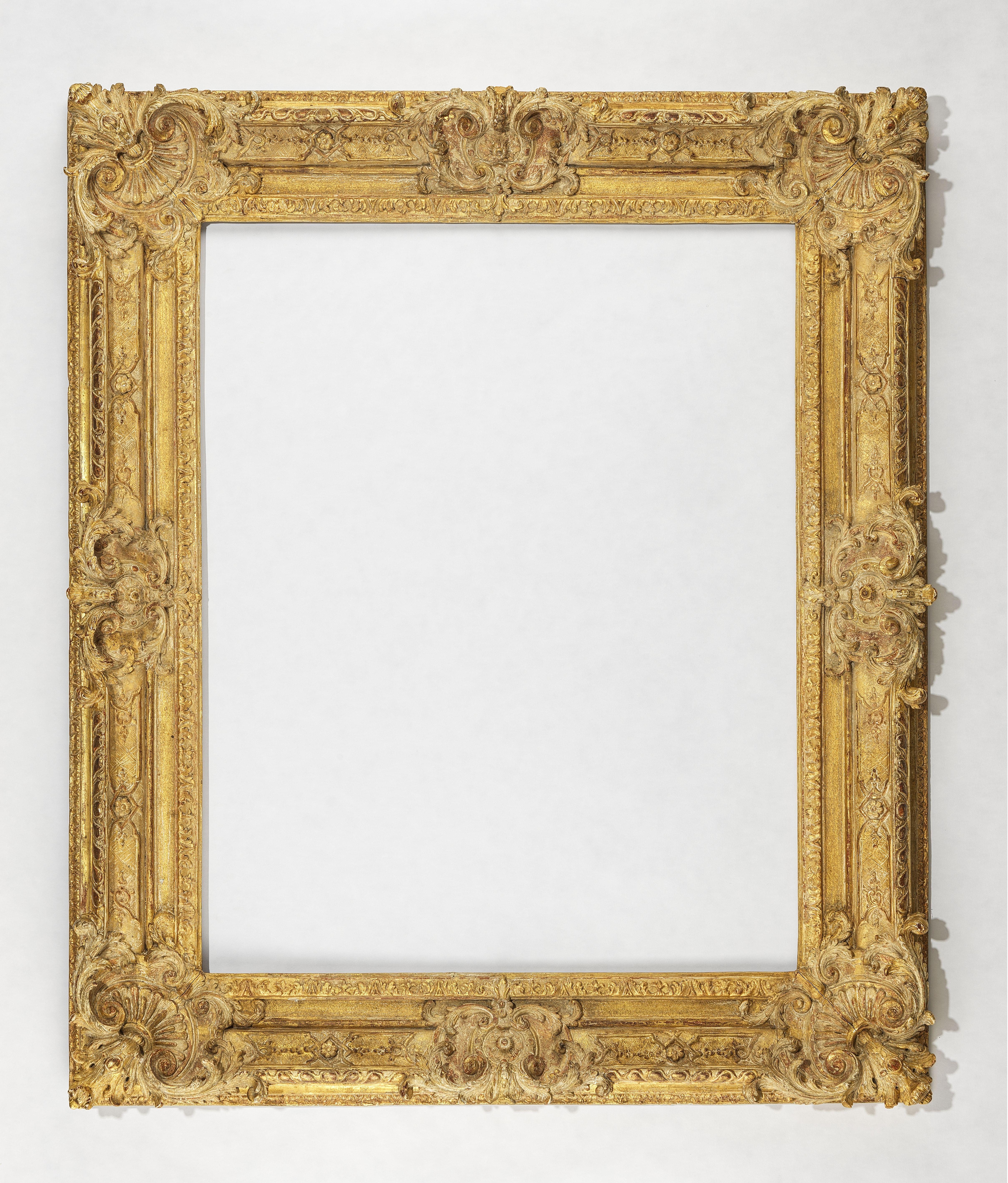 Bois sculpté et redoré, à motif de coquille et feuilles d'acanthe, 130x111 cm et à la vue 99,5x80 cm