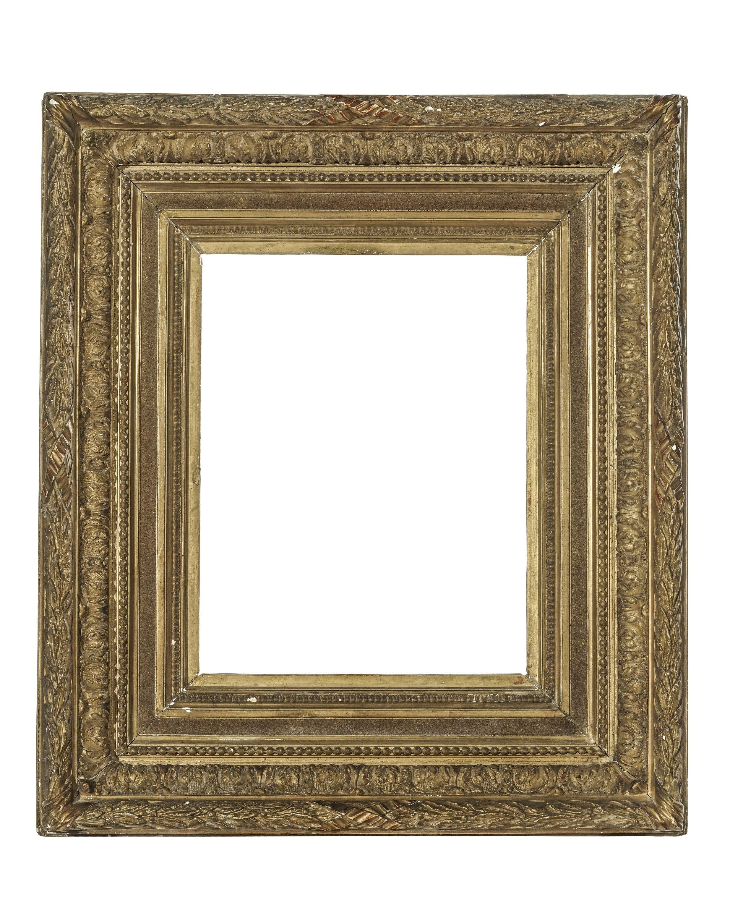 Stuc doré à décor de frises de lauriers et de feuilles d'acanthes, 36,5x29 cm