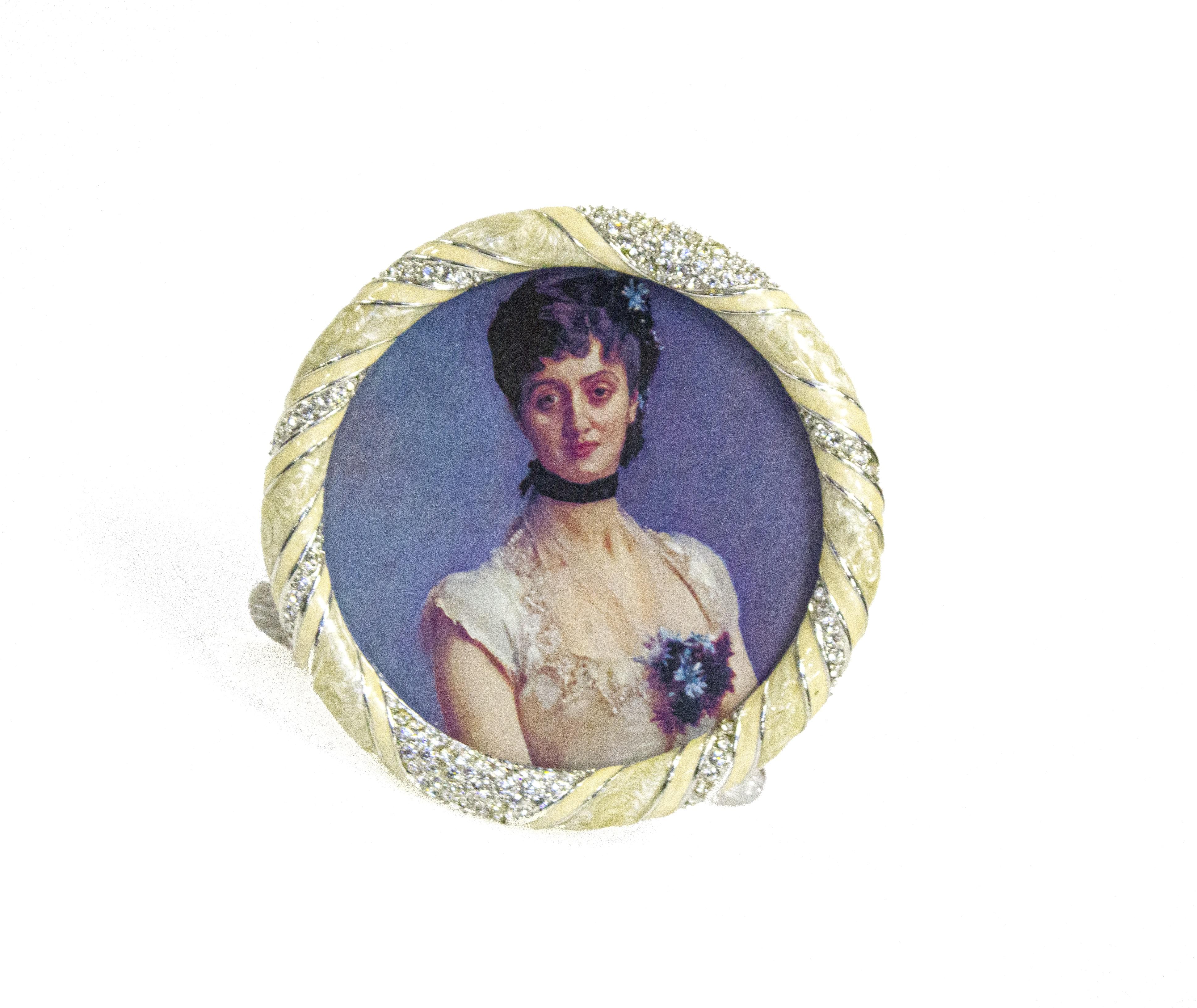 585. Fabergé, icône de Sainte Nadège dans un cadre à motif de ruban c...