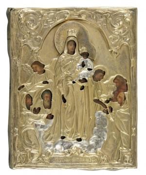 Icône russe, tempera sur panneau, oklade en argent et vermeil, S...