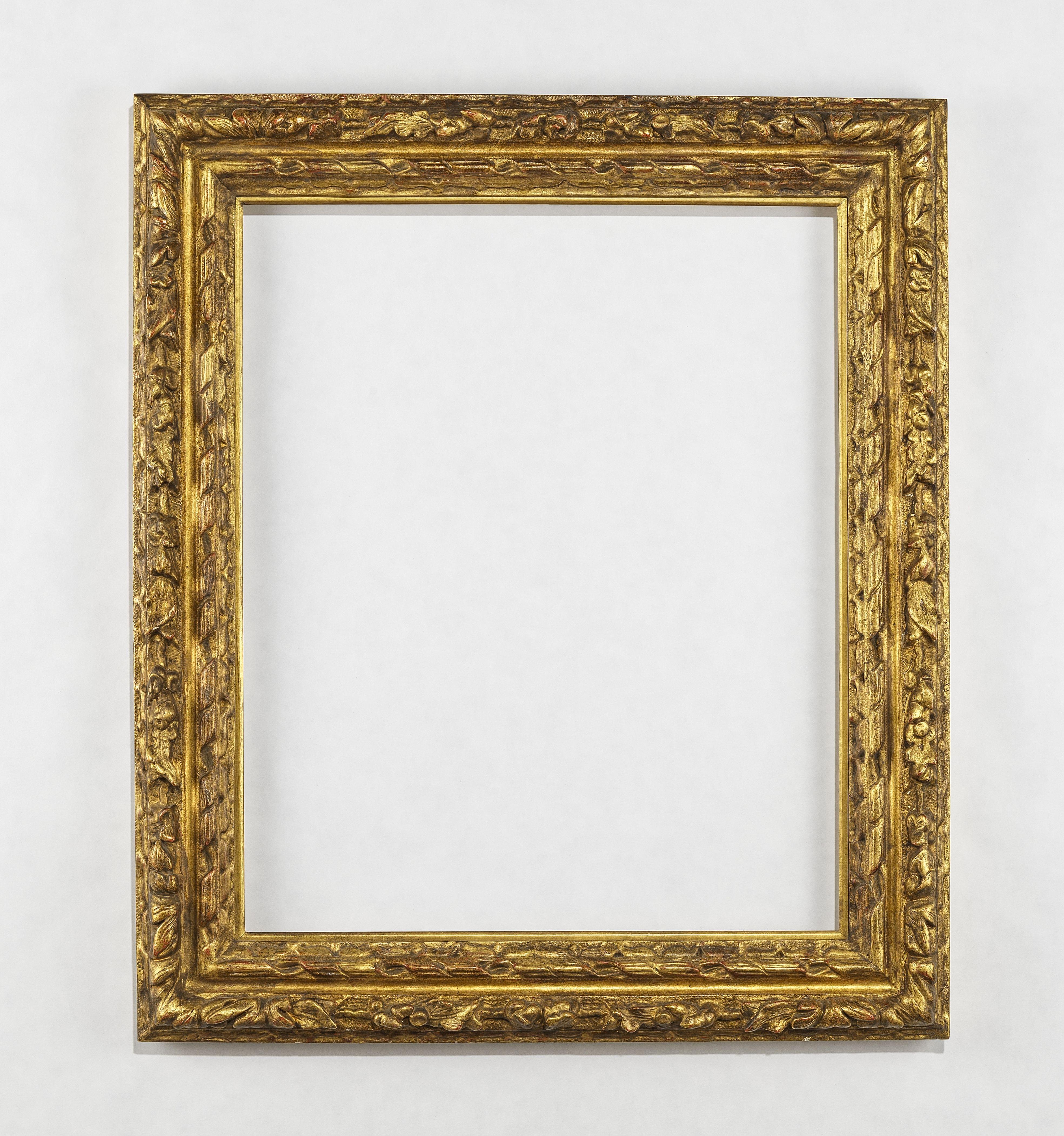 Bois stuqué doré, à motif de frise, feuillage et ruban, 93,5x80,5 cm et à la vue 74,5x61,5 cm
