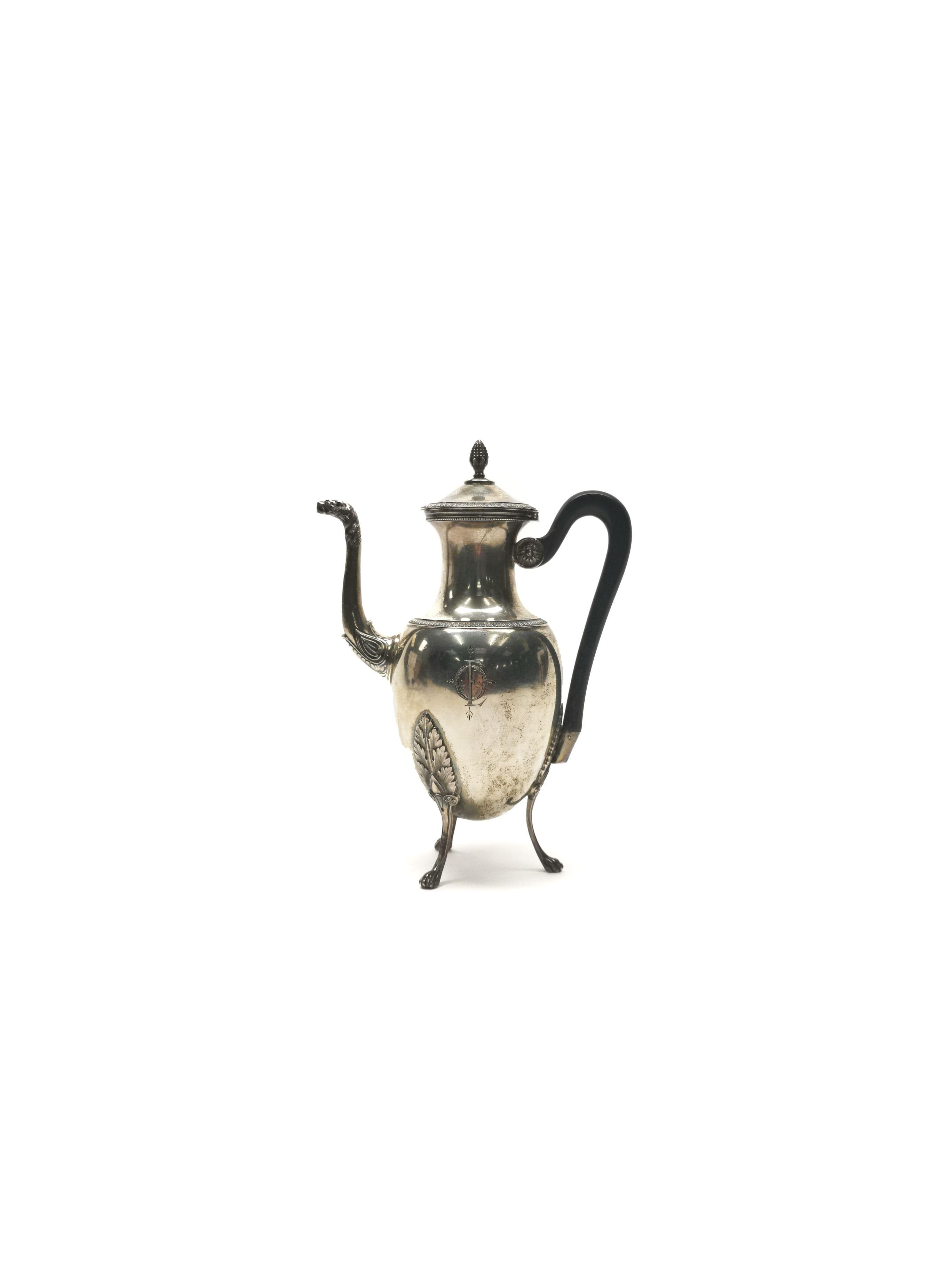338. Cafetière tripode d'époque Empire à bec verseur tête de léopard