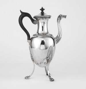 132. Cafetière néoclassique tripode à bec verseur cheval