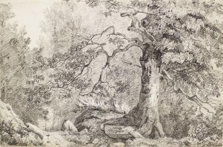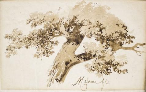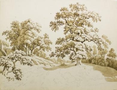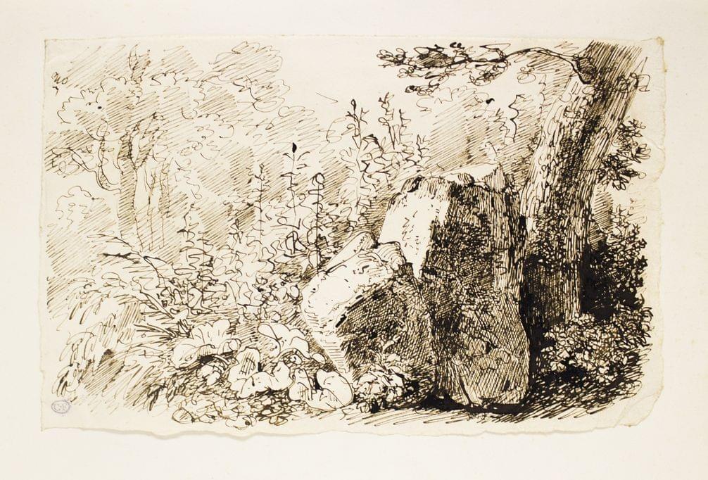 Etudes d'arbres et étude de rocher, 4 dessins à l'encre, de 11,5x18 à 21x33 cm