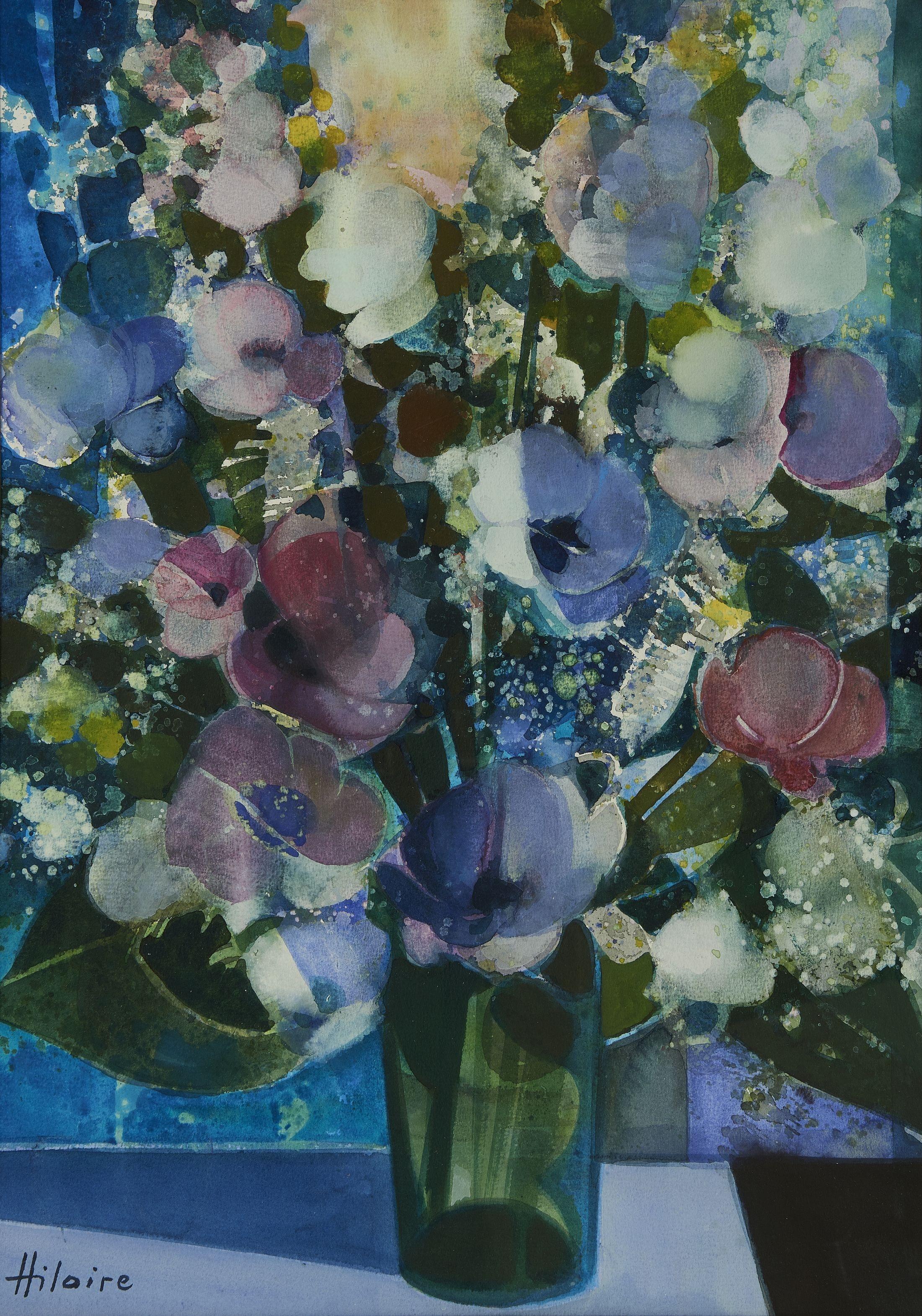 Bouquet de fleurs, aquarelle, signée, 65x50 cm