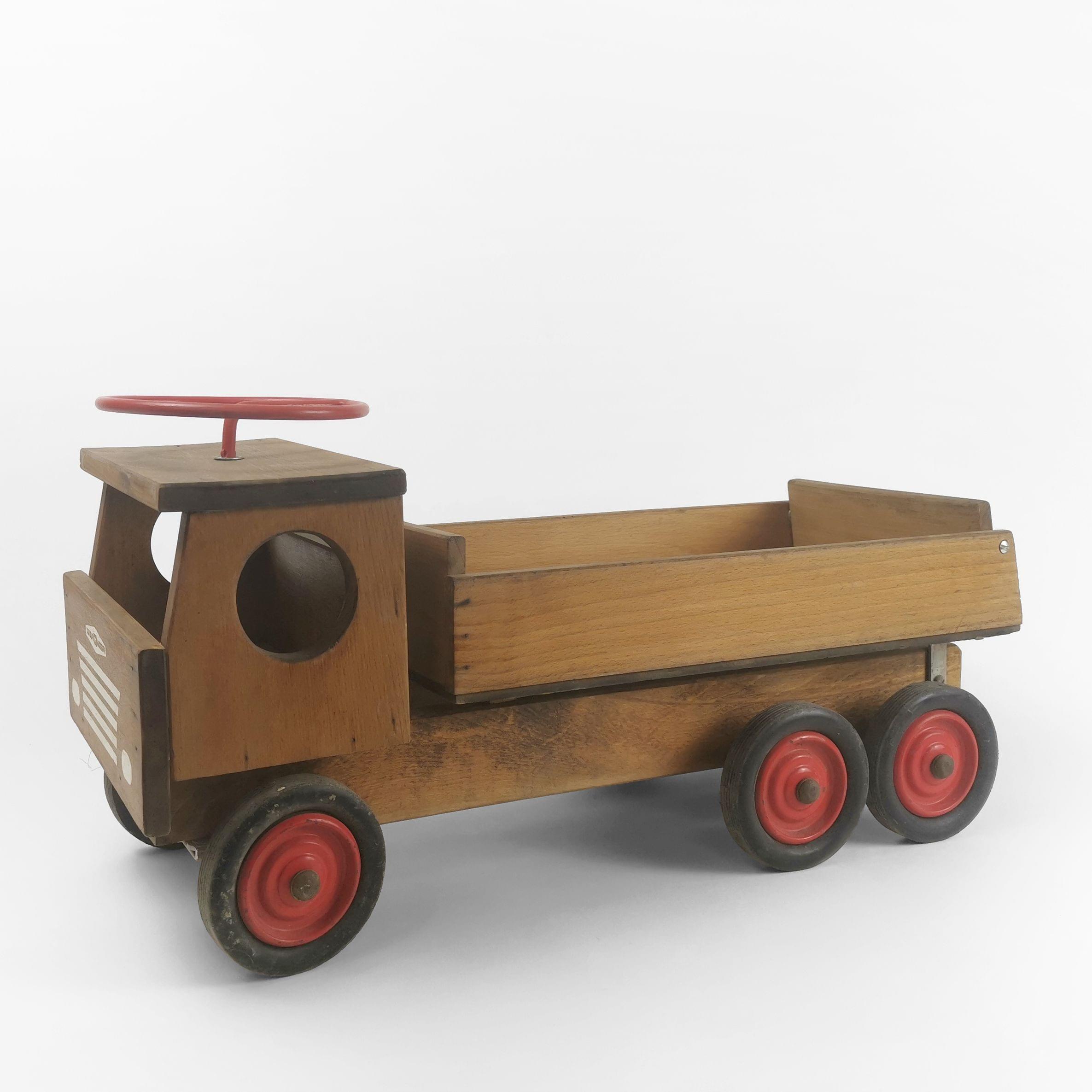 Jouet, bois et métal laqué rouge, L 62 cm