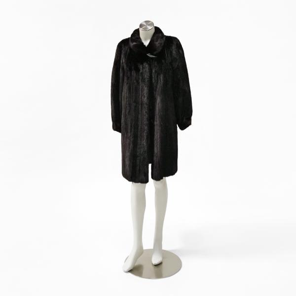 Vison brun foncé, intérieur noir en soie, fermeture à crochets,...