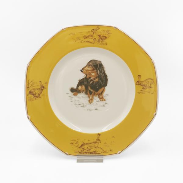 3790. Hermès, assiette à décor d'un teckel à poil long