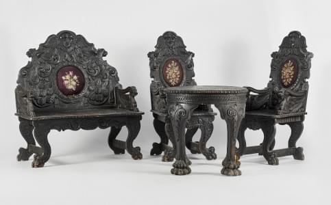 718. Salon anglo-indien comprenant un canapé, deux fauteuils et un gu...