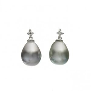 223. Pendants d'oreilles retenant des perles de Tahiti en goutte surm...