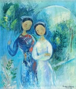 Les amoureux, huile sur panneau, signée et située Vence, 54x45 cm