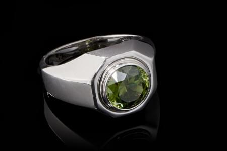 775. Bulgari, bague sertie d'un grenat vert probablement démantoïde t...
