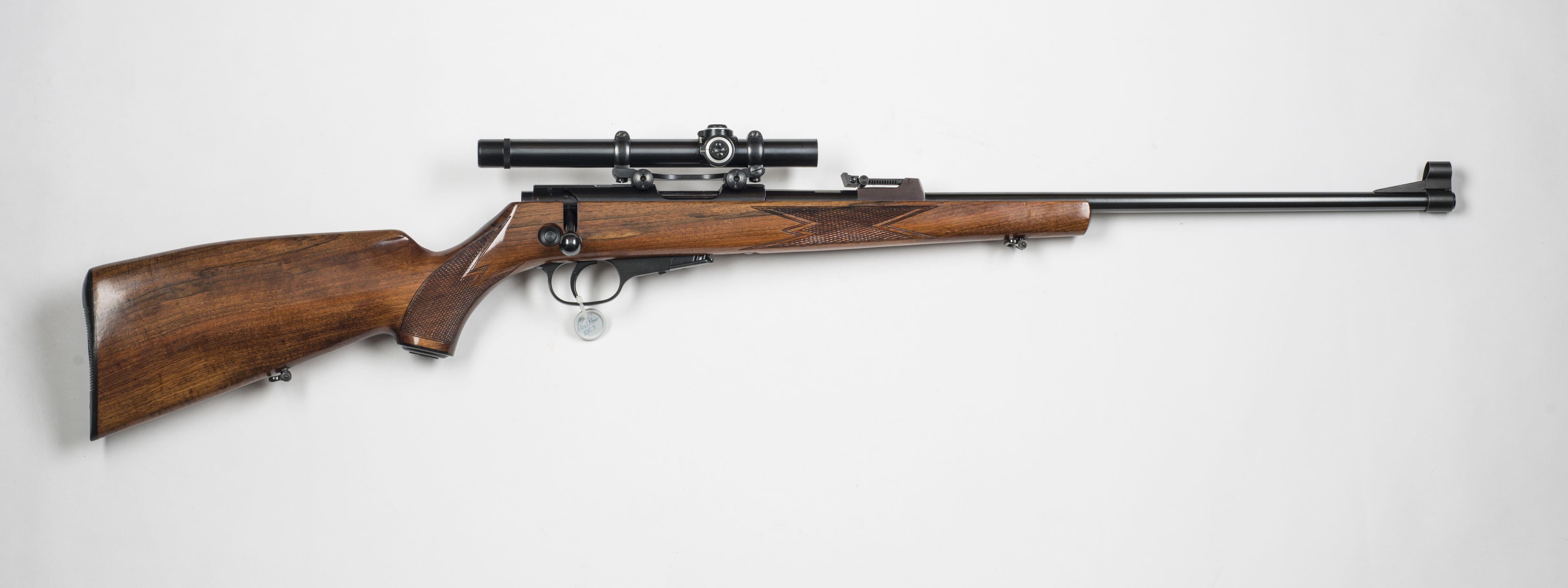 Calibre .22 Long rifle, numéro de série 100817, avec lunette et magasin supplémentaire