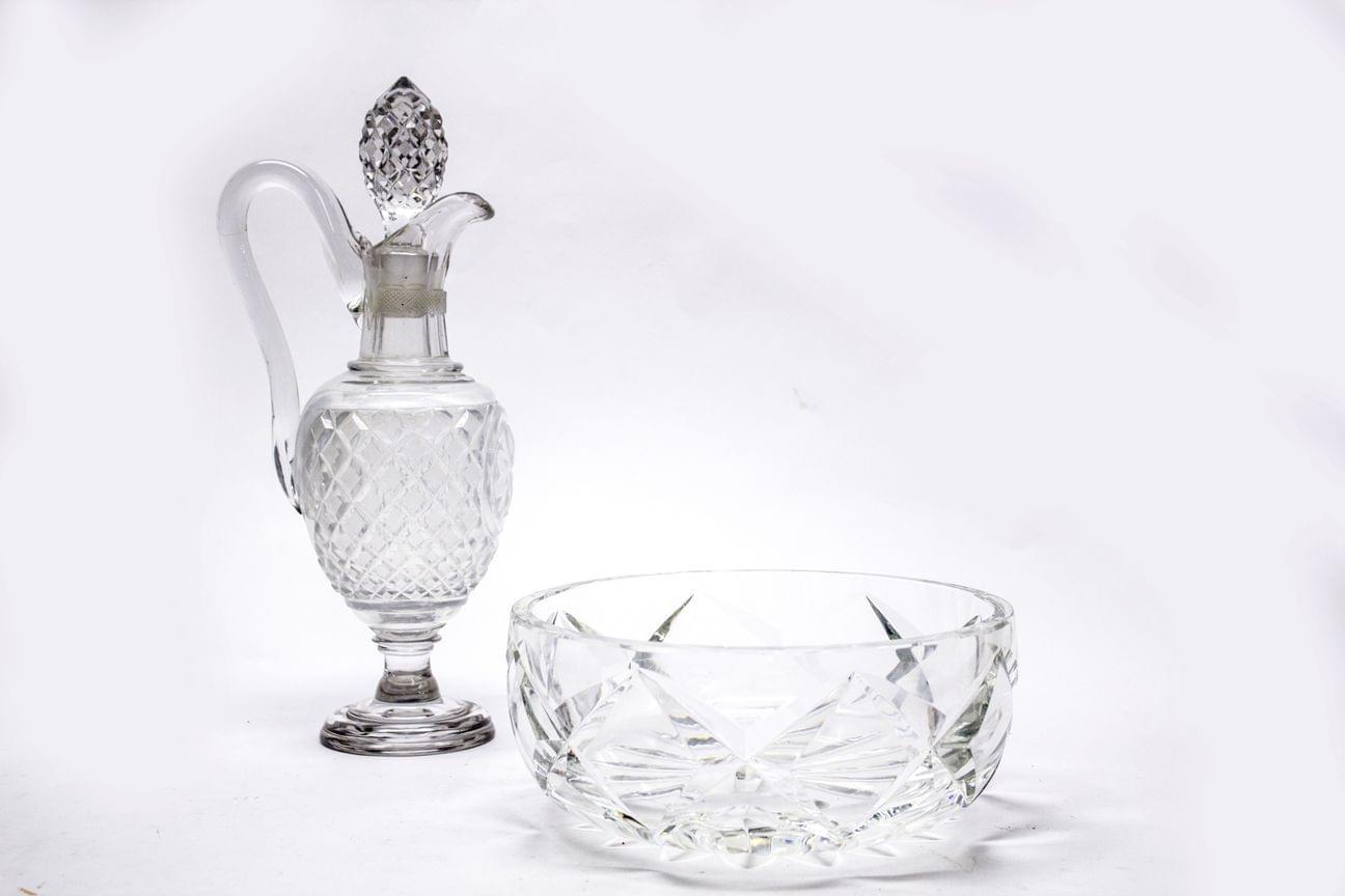 3357. Carafe à motif de losanges et saladier à motif d'étoiles