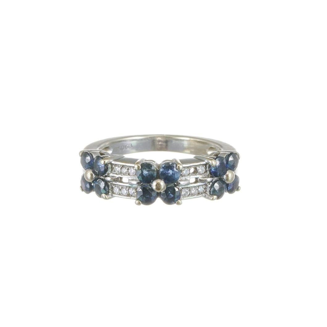 Deux vantaux en partie haute, un abattant et cinq tiroirs en par...