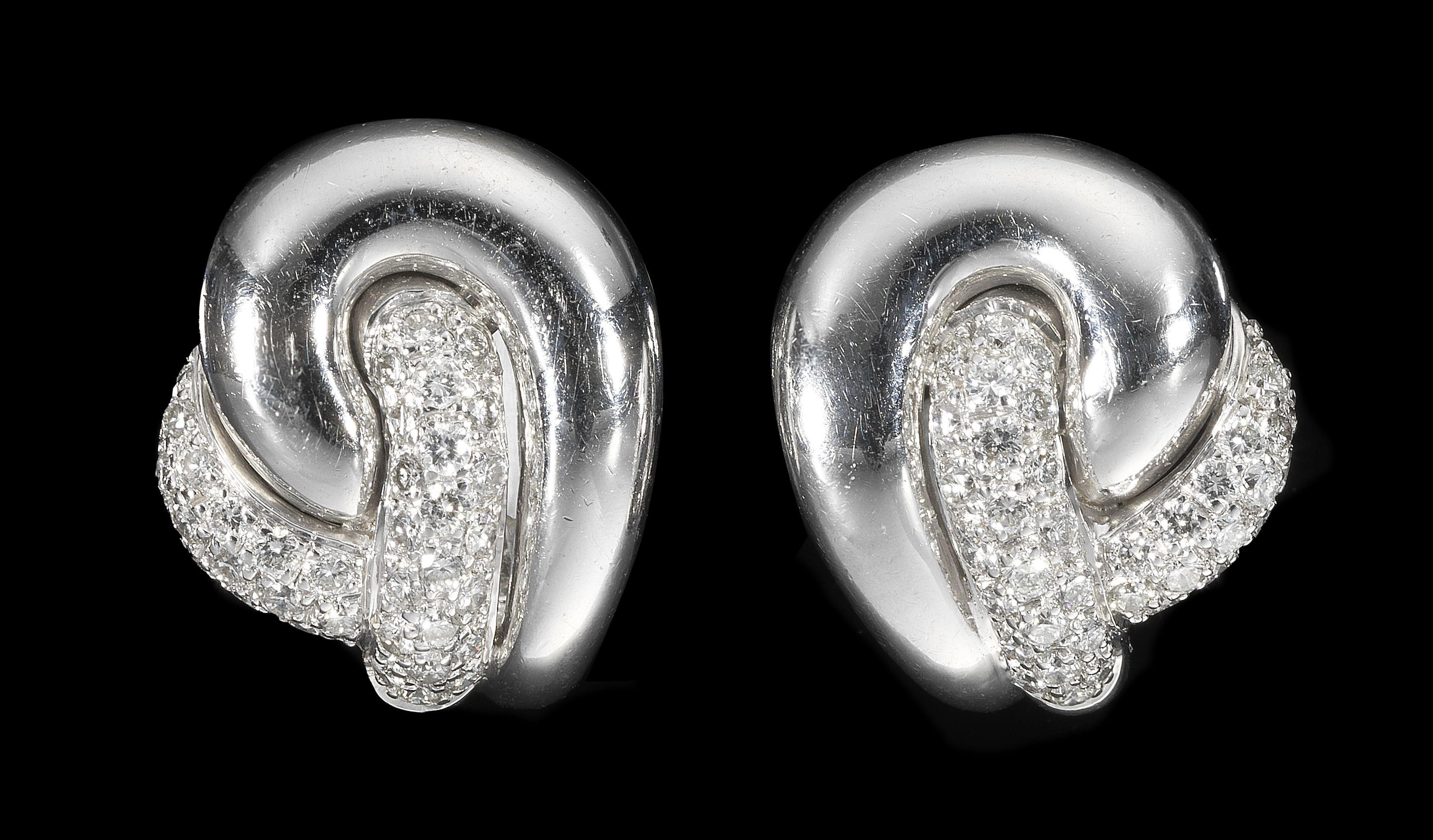 3360. Carl Bücherer, boucles d'oreilles à double motif godronné, l'un pavé de diamants