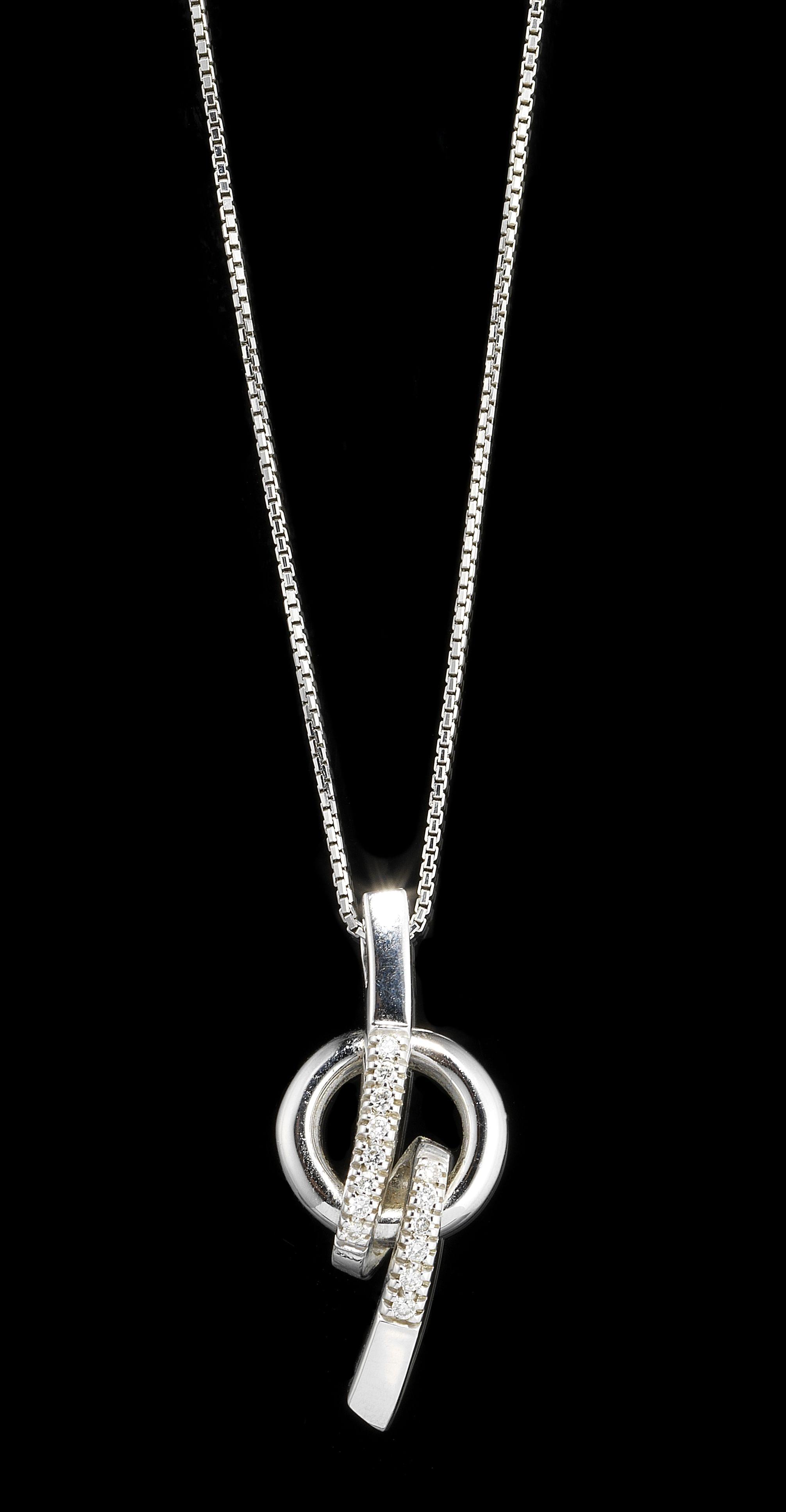 3173. Carl Bücherer, chaîne à maille serpent retenant un pendentif stylisé serti de deux lignes de diamants